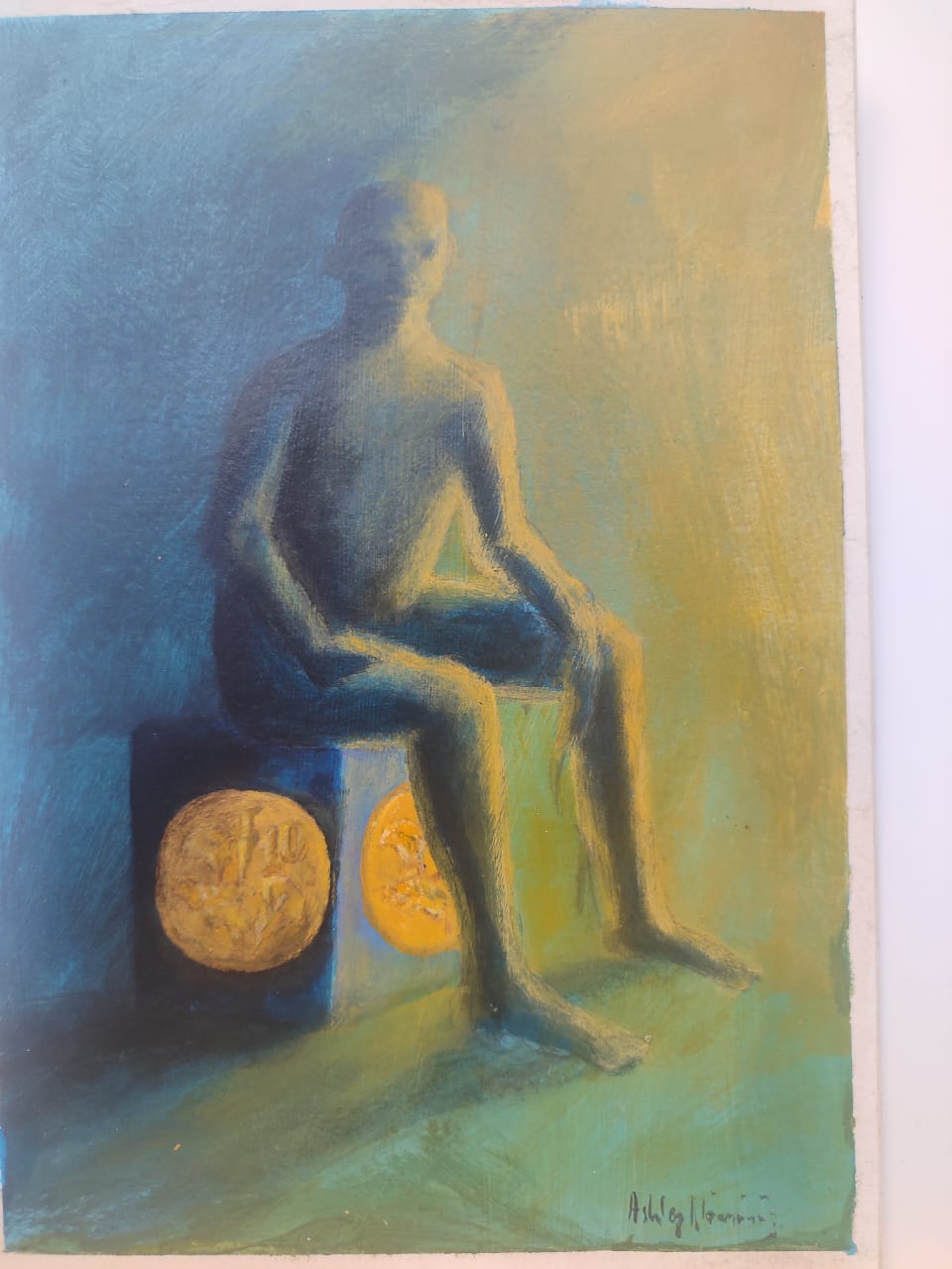 Acrylic on board - 29cm x 31cm - Ashley Dlamini is a distinguished South African artist and herbalist, born at Tembisa Hospital, South Africa. His practice is informed by the country’s diverse cultural heritage and seek s to establish common ground amid difference, highlighting both the beauty of diversity and the shared dimensions of humanity.