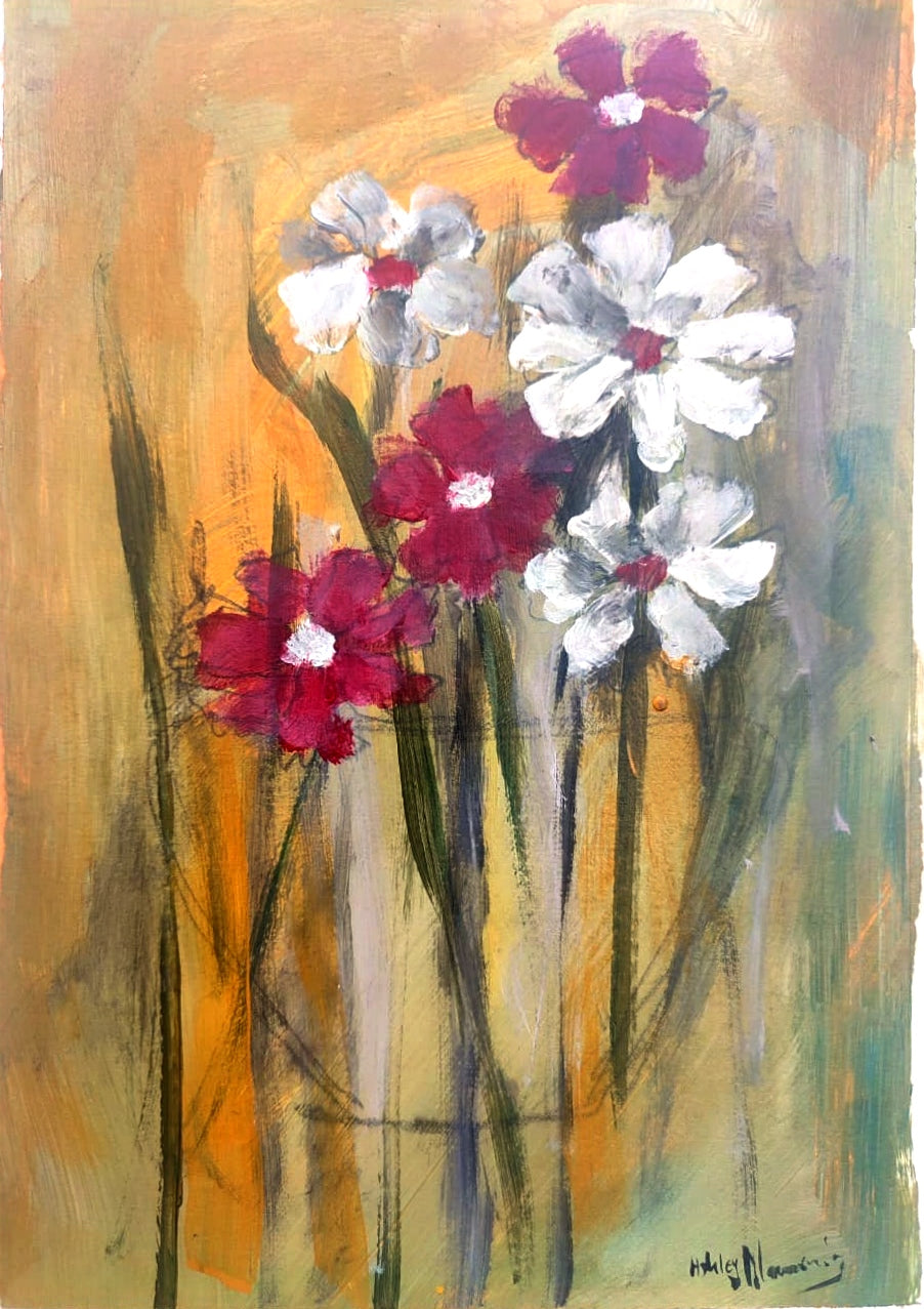 Acrylic on board - 29cm x 31cm - Ashley Dlamini is a distinguished South African artist and herbalist, born at Tembisa Hospital, South Africa. His practice is informed by the country’s diverse cultural heritage and seek s to establish common ground amid difference, highlighting both the beauty of diversity and the shared dimensions of humanity.