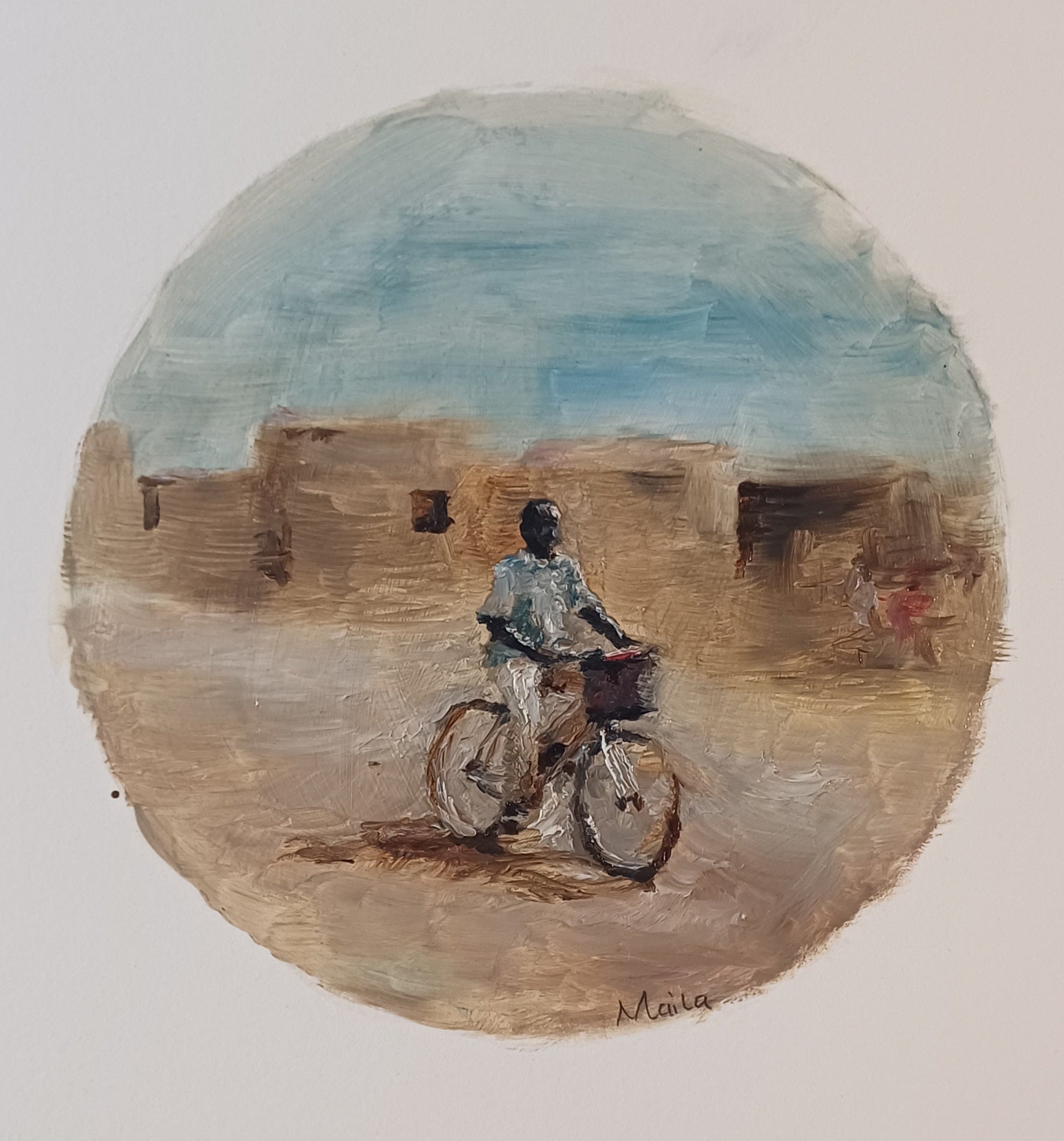 Oil on Board - 15cm Round- Dr. Maila is an exceptionally talented South African artist, born in 1995. His artistic inspiration derives from observing the daily lives and routines of individuals within his community and family. He has participated in numerous solo and group exhibitions, and his works have been featured and sold at various art auctions.