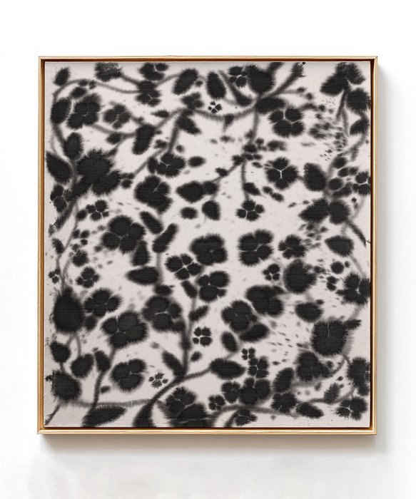 The stains that inhabit these surfaces do not represent flowers, but their latent energy: botanical echoes that dissolve, spread, and transform. The ink expands as if responding to a primitive vegetal logic, generating shapes that refer to stubble, spores, or seeds floating at the edge of the visible.
