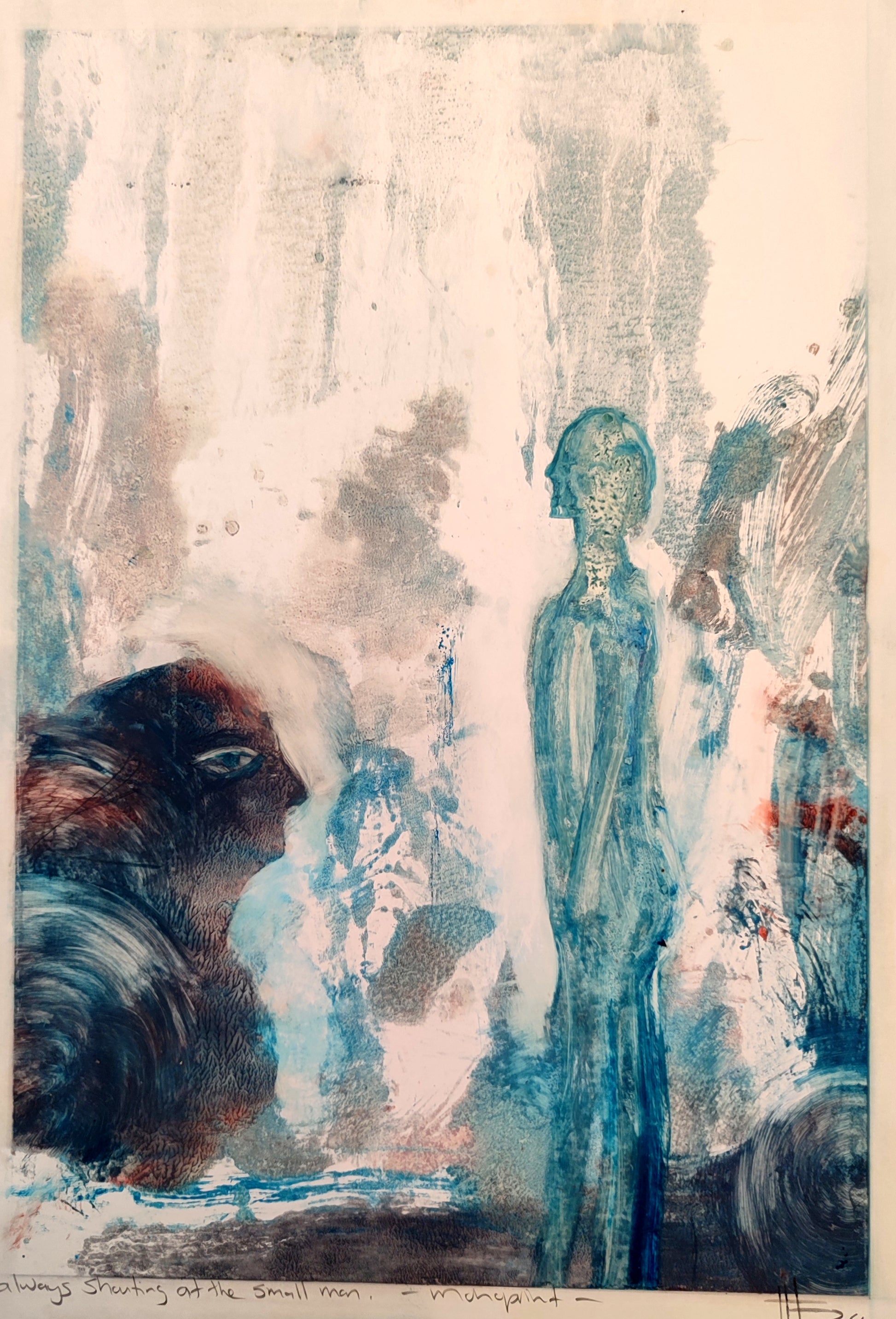 Monoprint on Poster Paper- 25cm 36cm - Hardus Koekemoer, a well-known South African artist specialises in sculpture and paintings. He uses a variety of mixed media such as enamel-based paints, oils, encaustic wax, and fire and smoke burn.