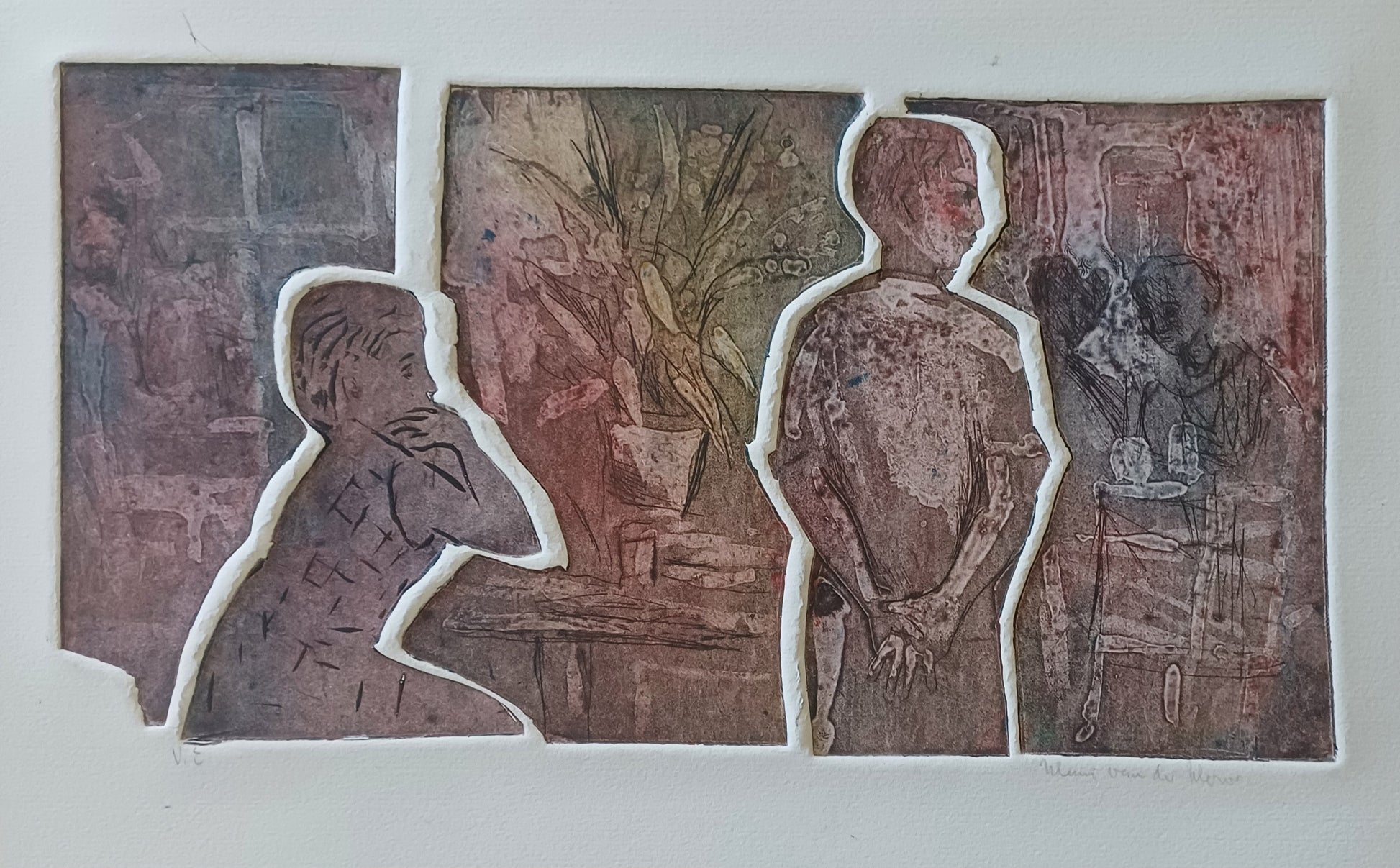 Etching - 32cm x 14cm - Mimi van der Merwe (born 1934, Malmesbury, South Africa) is a distinguished painter, printmaker, and etcher. She studied Fine Art at Stellenbosch Technical College under Edith ten Kate, followed by advanced studies in Brussels and Paris, where she specialized in etching and was awarded the Prix de l’Atelier and a French government bursary.