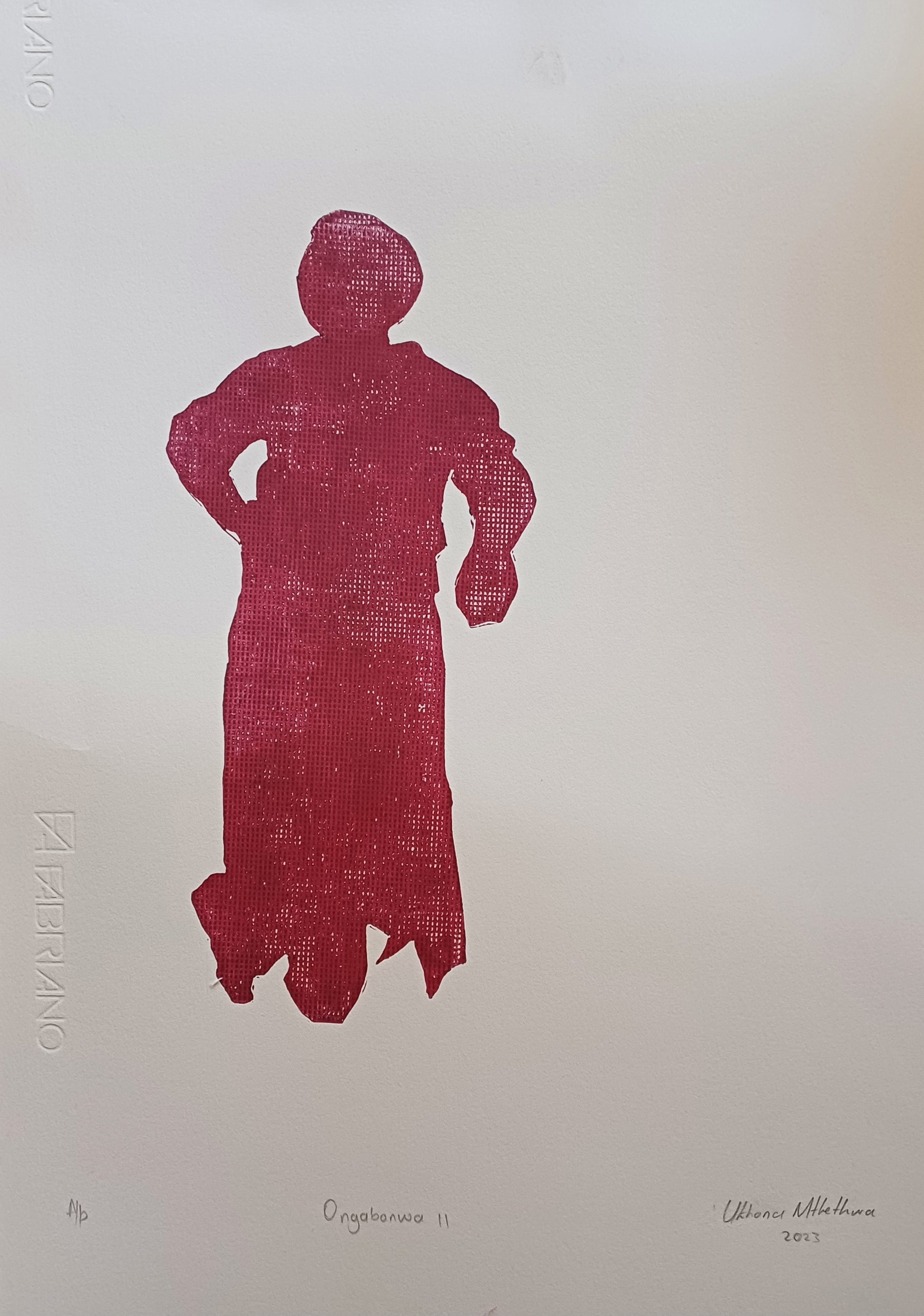 Linocut on Fabriano paper - 34 x 50 cm - Ukhona Mthethwa’s artistic practice is grounded in the exploration of Blackness as a complex and dynamic condition, intricately interwoven with themes of spirituality, migration, freedom, and liberation. Through painting—his primary medium—Mthethwa employs recurring metaphors such as the bag and the boat to articulate the spiritual and material dimensions of Black existence. These symbols serve as conceptual vessels through which he examines the historical and contemporary experiences of displacement, resilience, and survival within the African and diasporic contexts.